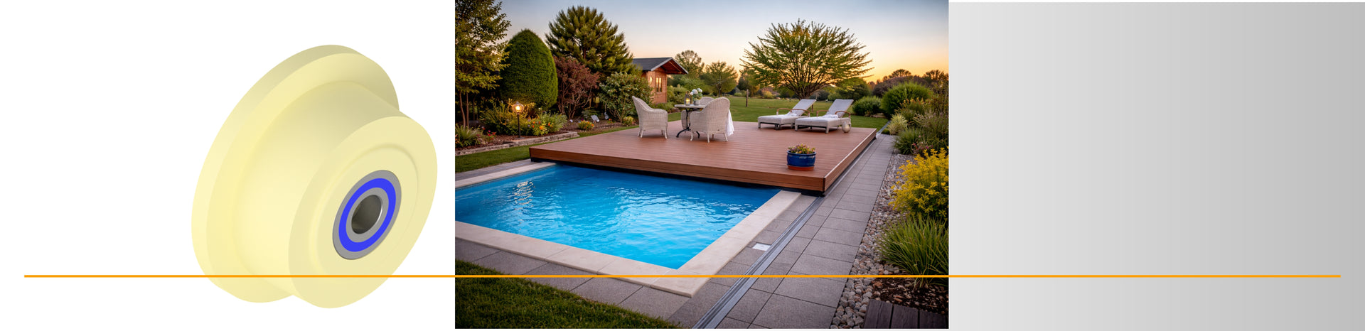 Schwere Pooldecks und Schienensysteme im Außenbereich stellen höchste Anforderungen an die Technik. Herkömmliche Rollen stoßen hier schnell an ihre Grenzen.